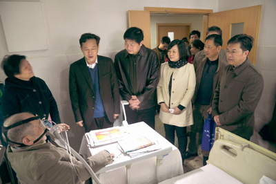 看望欧老前,黄惠勇巡查了医院医疗教学综合楼建设情况,并到肛肠科看望了正在坐诊的我院老专家贺执茂教授。
