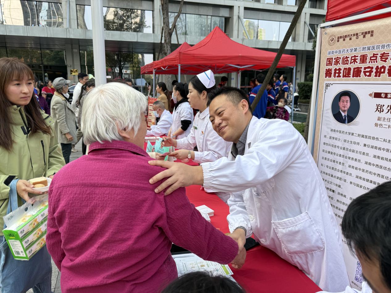活动现场,红色帐篷下人头攒动。医疗团队刚布置好义诊台,就有不少居民围拢过来。郑主任凭借丰富的临床经验,仔细为居民检查脊柱状况,耐心询问病史,针对颈肩腰腿痛等常见脊柱问题,给出个性化的诊疗建议,让居民直观感受中医骨伤疗法的独特魅力。