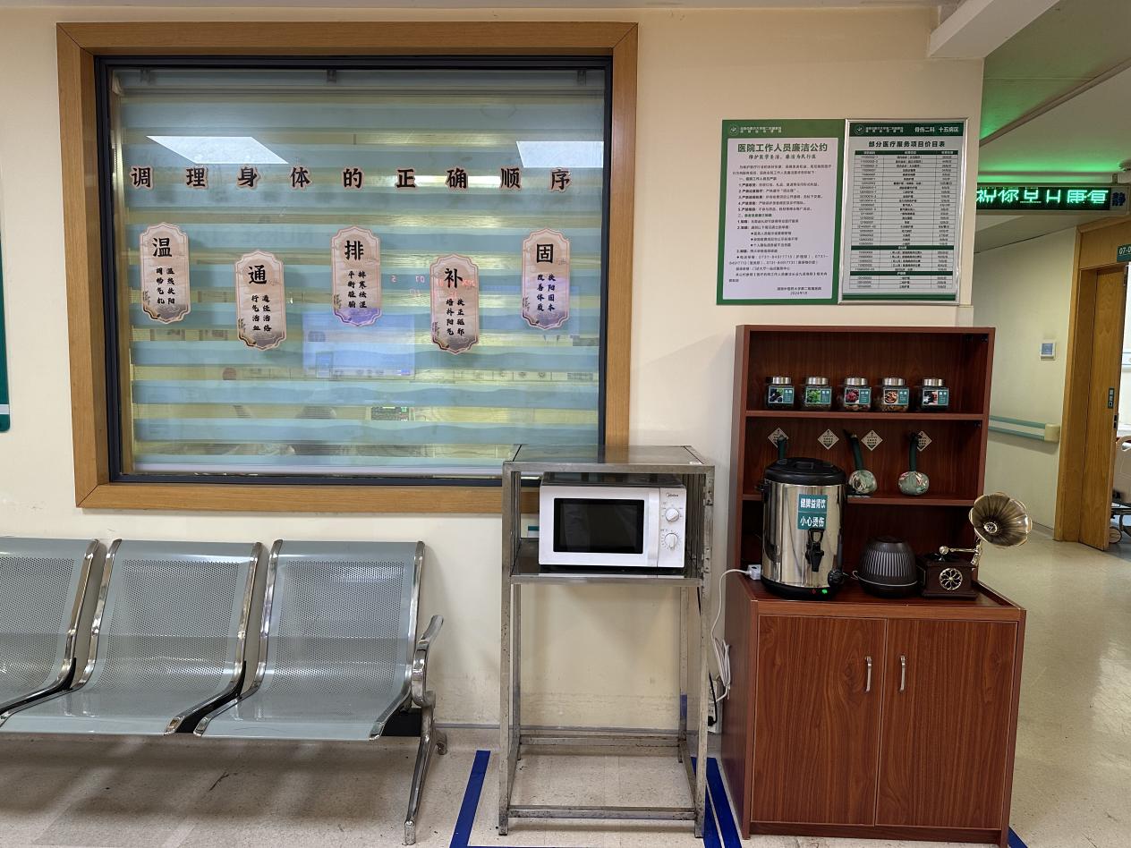清晨,当第一缕阳光透过窗户,护士站已飘起淡淡的茶香。这里精心布置了中医药疗愈区,不仅有养生茶吧,还展示着“调理身体的正确顺序”——温、通、排、补、固。患者可以在此品尝健脾益肾的中药茶饮,感受中医药的独特魅力。空气中弥漫的中药香薰,由医护人员根据节气和患者需求精心调配,既净化了环境,又有助于舒缓情绪、改善气血运行。