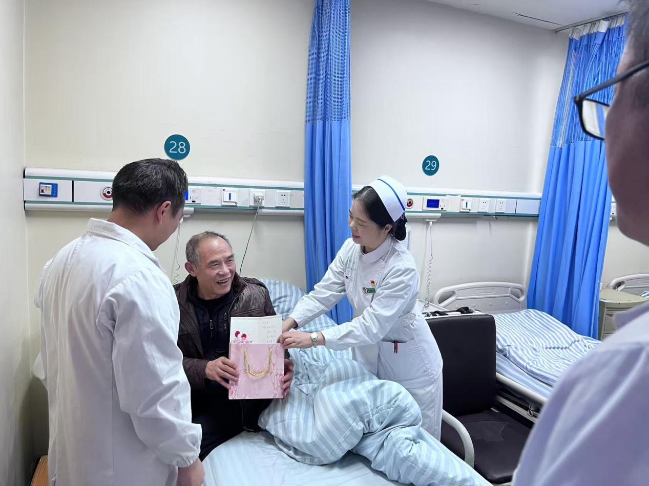 上午查房时,护士长熊卫华偶然获知当天是刘嗲嗲的七旬寿辰。“老人独自住院,子女暂时没在身边,咱们得让他过个暖心的生日。”熊卫华悄悄和医护团队“密谋”,不到半小时,一张手写生日贺卡、一份包装精致的养生艾草锤,已经悄然准备妥当。