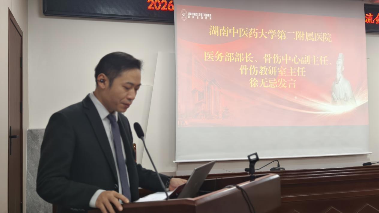 徐无忌详细介绍了骨伤中心作为集医疗、教学、科研于一体的国家级重点专科所取得的显著成绩,以及当前面临的发展机遇与挑战。他强调,此次聘任旨在借助顶尖“外脑”为骨伤中心把脉定向、赋能增效,并阐述了特聘教授在学科规划指导、科研项目合作、高水平学术交流、青年人才培养等方面的职责,表示将与中心同仁一道,全力协调资源,确保合作事项有效落地,共同谱写骨伤中心“十五五”发展新篇章。