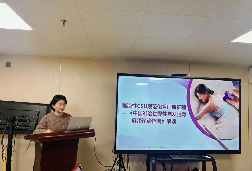 为推进门诊建设,皮肤中心同期举办了“荨麻疹专病门诊建设启动会暨诊疗新进展学术研讨会”。启动会上,皮肤中心主任汪海珍、皮肤科副主任张予晋阐述了专病门诊的建设目标与意义。在学术研讨环节,主任医师周奇志就《中国难治性慢性自发性荨麻疹诊治指南》进行了专题解读,为门诊的规范化诊疗提供了坚实的学术支撑。