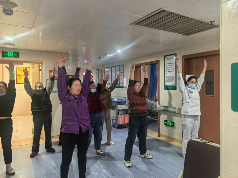 针对患者偏瘫、乏力及情绪紧张等问题,科室每日组织八段锦练习,由护理团队指导,结合简化动作,确保每位患者都能安全参与。患者在练习中体验到肢体舒展、精神舒缓,不仅激活机体,也增强了康复信心。一位右侧肢体无力患者练完后感叹:“做完感觉全身都轻松了,好像又有力量了。”