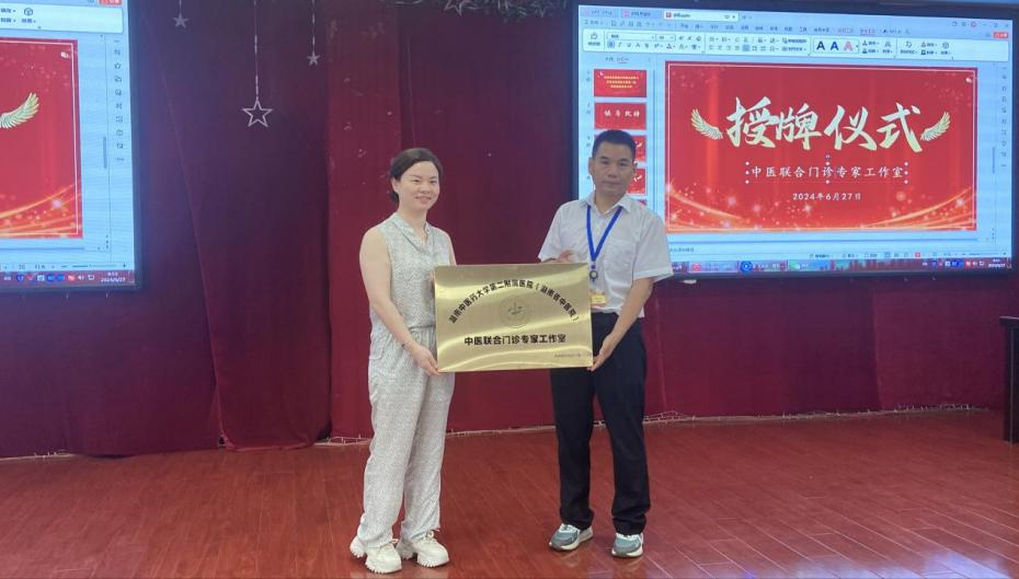 我院皮肤科主任汪海珍与乳腺外科主任欧阳志为萍乡市中医院分别授牌“中医联合门诊专家工作室”与“乳腺科医联体科室共建合作单位”,标志着两院在中医皮肤科和乳腺科领域的合作将迈向新的高度。