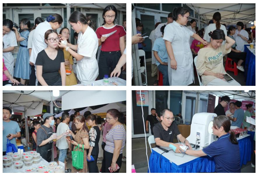 “晚饭后带小孙子出来散散步,还能让名中医给把个脉,喝一杯特色中药茶饮,再刮个痧,贴个敷贴,真是不错!”刚体验完中医特色项目“铜砭刮痧”的张爷爷赞不绝口。夜市现场,义诊咨询区、中医特色技术体验区、中药茶饮药膳品尝区、中医药文创产品展示区等布置井然有序,尽显浓郁的中医药文化特色。