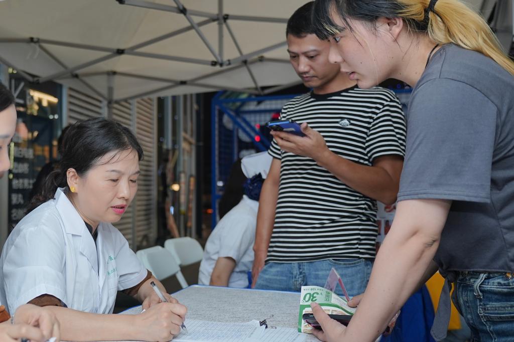 各科室专家在各自的“摊位”前为市民提供健康服务