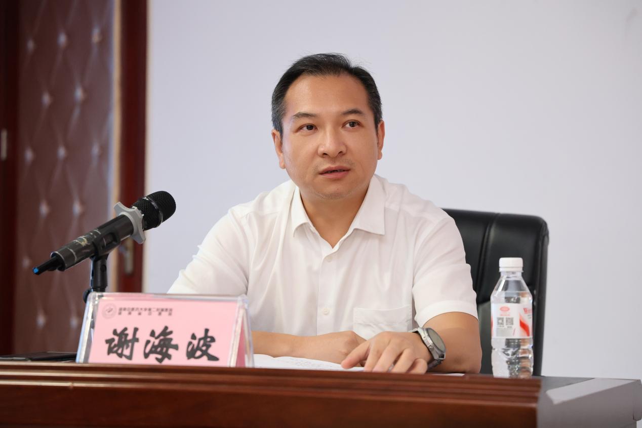 为持续提升医疗服务质量,强化安全保障能力,全面推进医院高质量发展进程,我院于6月5日下午在华佗楼25楼多功能厅召开2025年度第二次医疗业务例会暨行风工作会议。全体在院院领导出席会议,各临床医技科室主任、护士长及相关部门负责人和临床医技科室医生参会。会议由副院长谢海波主持。