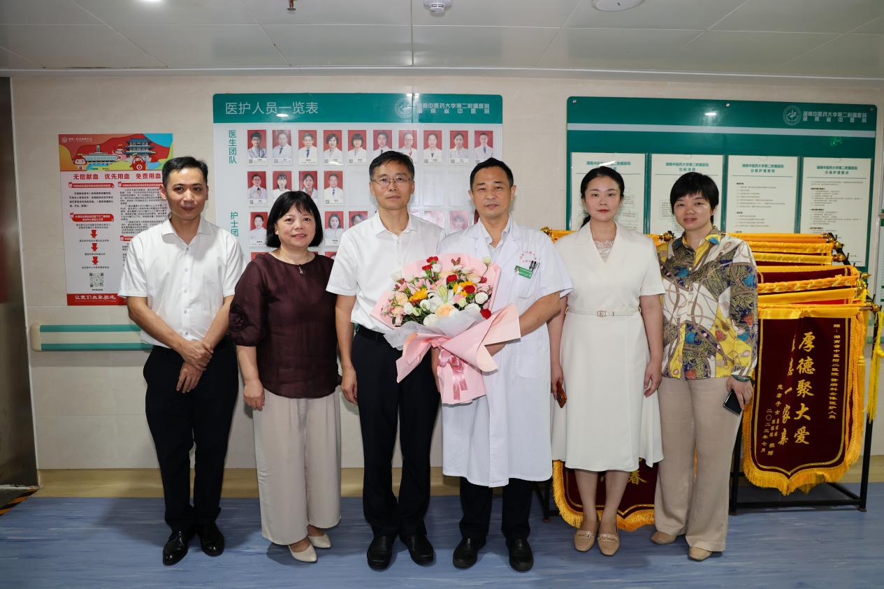 肖文明在讲话中高度赞扬了医院在全省中医药事业发展中作出的重要贡献,充分肯定了全体医师及家属的付出。他强调,深化医改的成功需要兼顾医务人员与人民群众的满意度,对医疗服务提出了更高要求。医院应坚守“大专科、小综合”的发展定位,回归服务初心,着力提升专业水平,同时应采取有效措施提升职工满意度,解决医务人员的后顾之忧,相信附二院在院领导班子的带领和全体职工的努力下,一定能实现发展目标,为健康湖南建设做出更大贡献。