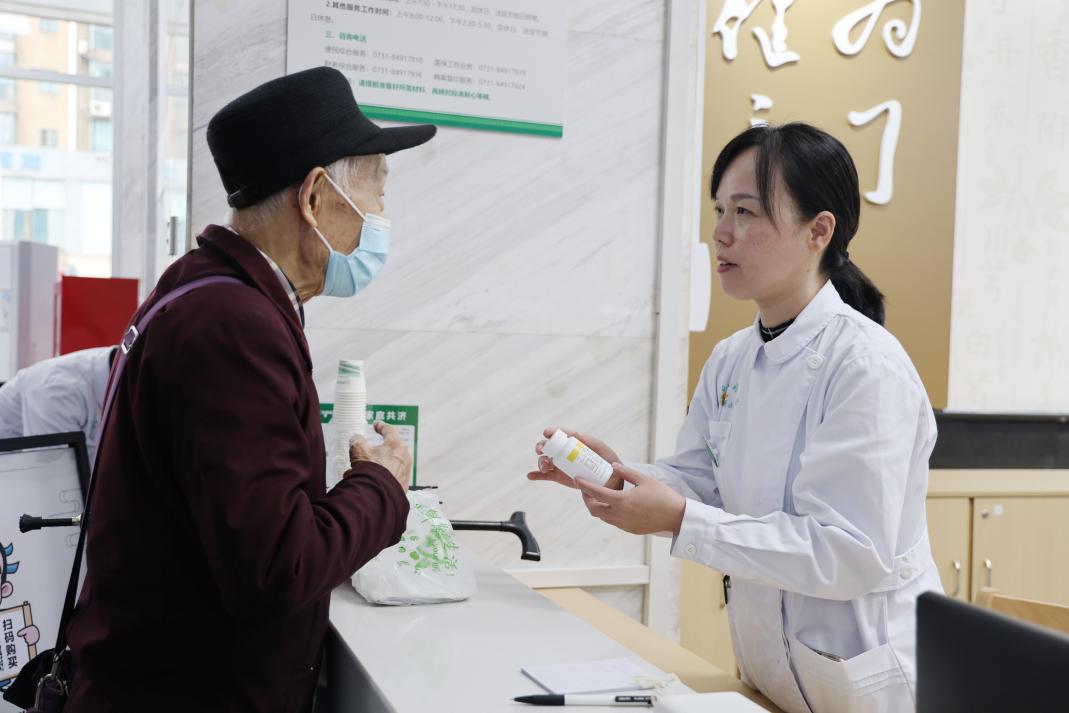 在敬老接待服务区,工作人员正在为老年患者耐心答疑。