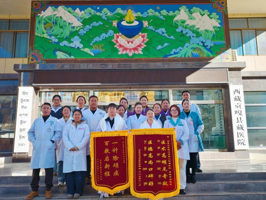 两位医生共同引进的穴位埋线与督脉灸技术,在高原绽放异彩。穴位埋线累计治疗百余例,直接推动医院成立体重管理门诊,契合国家健康战略;督脉灸则针对高原寒邪,为风湿性关节炎患者带去温暖。他们的足迹还遍及岗堆镇、朗杰学乡等偏远地区,义诊送药超500人次,让中医技术如格桑花般开遍牧场。
