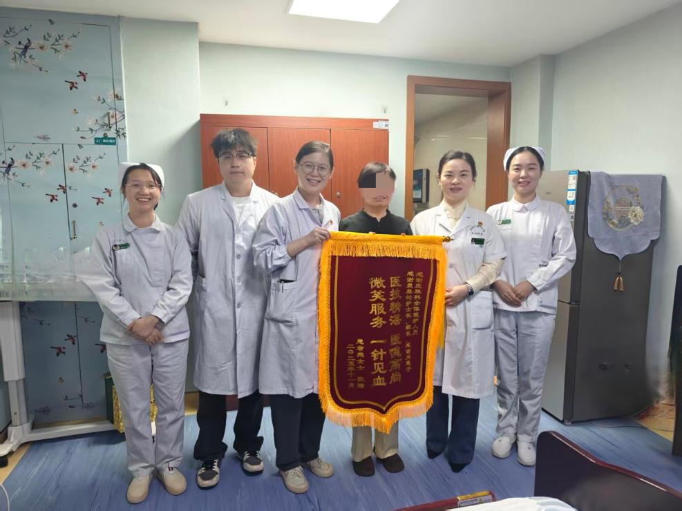 来自宁夏的施女士对此深有感触。今年11月,因慢性荨麻疹久治不愈,施女士跨越千里来到湖南中医药大学第二附属医院皮肤中心求医,仅一周就好转出院。期间,医护人员治疗专业、护理用心,还贴心照顾到她的生活需求,连她悄悄塞的红包也被当场拒收,这让她十分感动。“从西北到长沙,不仅治好了我的皮肤病,更让我感受到了医者的专业与温度!”出院前,施女士特意为医护团队送上锦旗。