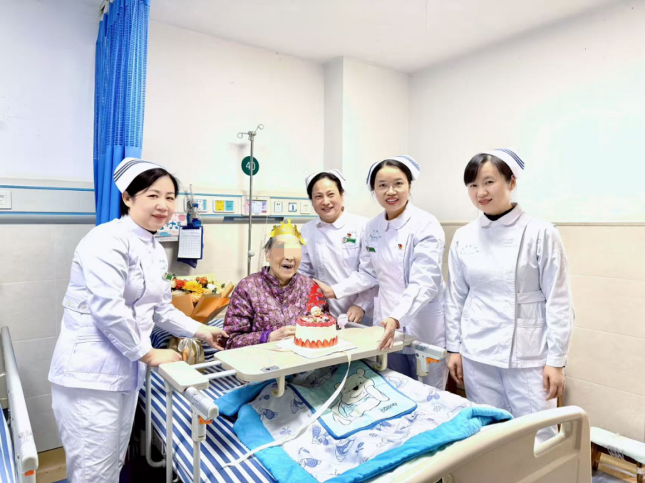 11月21日在老年病科,护理人员为96岁的王奶奶举办“病房生日会”。(科室供图)