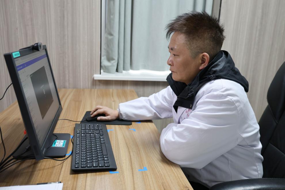 何银辉正在通过中医联合门诊与基层患者连线。