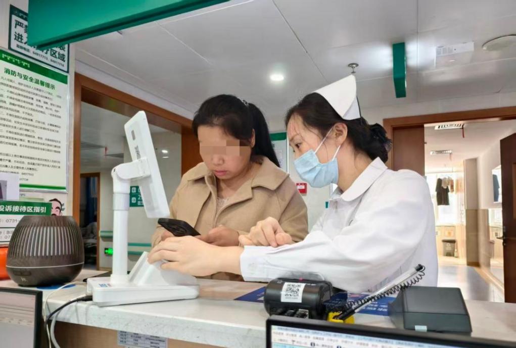 在住院部,护士正在指导患者进行床旁结算。(科室供图)