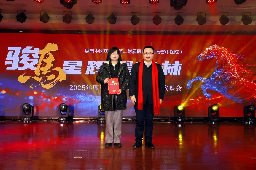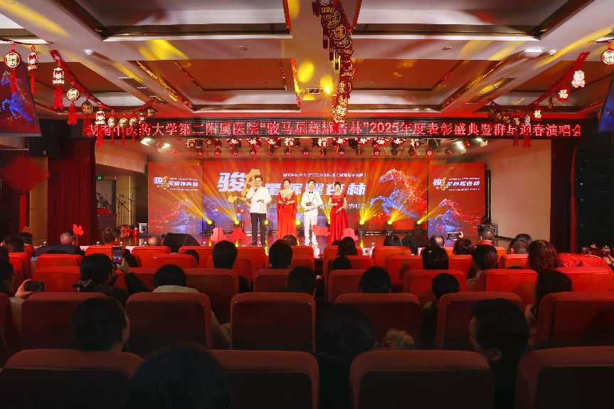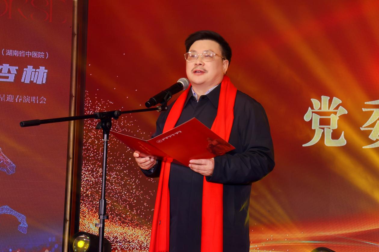 骏马奔腾辞旧岁,春风浩荡启新程。2月10日下午,我院2025年度总结表彰暨2026年迎春演唱会在仲景外科楼25楼多功能厅隆重举办。湖南中医药大学党委书记戴爱国、全国名中医袁长津、医院名老中医刘新祥、“时代楷模”龙铁牛、“全国老药工”王竹鑫、医院领导班子全体成员、职工代表及家属代表欢聚一堂,共贺新春,共话发展。