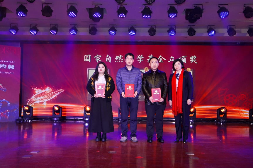 医院党委委员、副院长邓桂明为“国家自然科学基金立项奖”获得者王真权、张予晋、郑飘颁奖。