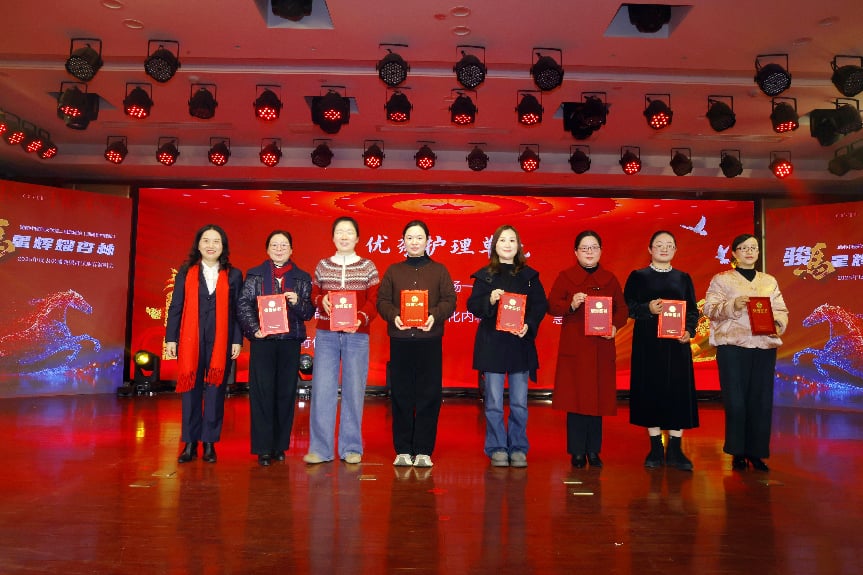 医院党委委员、副院长蒋谷芬颁发“优秀护理单元”“优秀护士长”奖项。