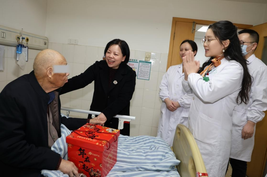 “老人家,我们来看望您了,祝您早日康复,健康长寿!”农历春节到来之际,一幕幕温馨的场景正在上演。医院党委班子成员带队来到病房一线,为全院90岁以上的住院病友送上健康关怀。