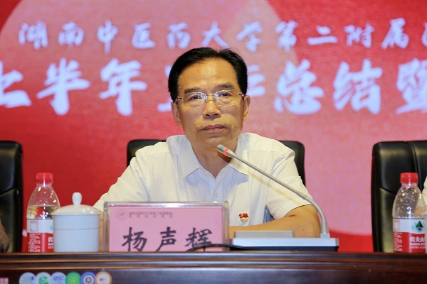 最后,医院党委书记杨声辉详细深入地总结分析了医院当前的业务发展情况,就数据增长情况与省级兄弟医院进行了比较剖析。对于下半年的工作,声辉书记围绕四句话勉励全院干部职工:一,继续深入开展主题教育,以学促干促发展;二,吸收正能量,排除负能量,凝心聚力建新功;三,认清形势,管好自己,遵纪守法保清廉;四,鼓足干劲,排除万难,激情四射奔目标。声辉书记强调,上半年的收获和成绩凝聚着大家的汗水,值得鼓励,下半年的任务仍旧艰巨,希望大家不畏艰难,敢打敢拼,目标坚定,勇破阻碍,齐心协力推动三甲评审复核顺利通过和年度目标任务圆满完成。