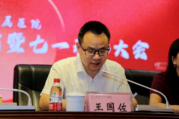 接下来,医院副院长蒋谷芬宣读《关于表彰优秀共产党员、优秀党务工作者、先进基层党组织的决定》,院领导依次为受表彰的先进个人和集体代表颁奖。