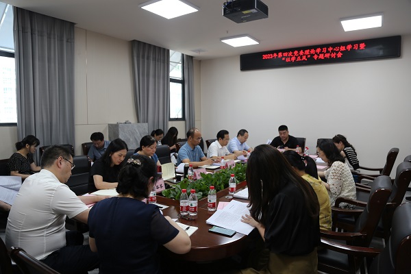 随后,我院在扁鹊楼9楼会议室召开了党委理论学习中心组学习暨“以学正风”专题研讨会,湖南中医药大学主题教育指导二组组长、信息科学与工程学院党委书记陈志鹏到场指导,并对下一步医院开展主题教育提出相关要求,医院在家院领导、党工团负责人、各党总支及党支部书记参加了研讨会。