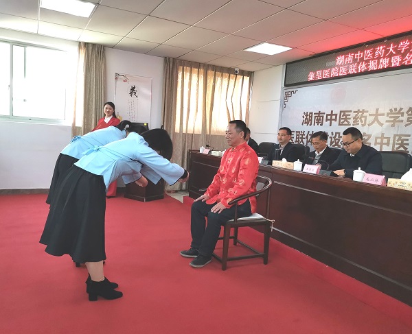 “师道大矣哉,从师而求传道授业,实乃大医精诚之本。”集里医院李明珠、莫丽两位医师拜师于湖南省名中医毛以林教授门下为徒。读拜师贴、喝敬师茶、听师教诲,以昭笃诚。毛以林教授为两位徒弟送上自己精心编写的著作,希望两位徒弟能够传承弘扬深究岐黄活人延年之术。