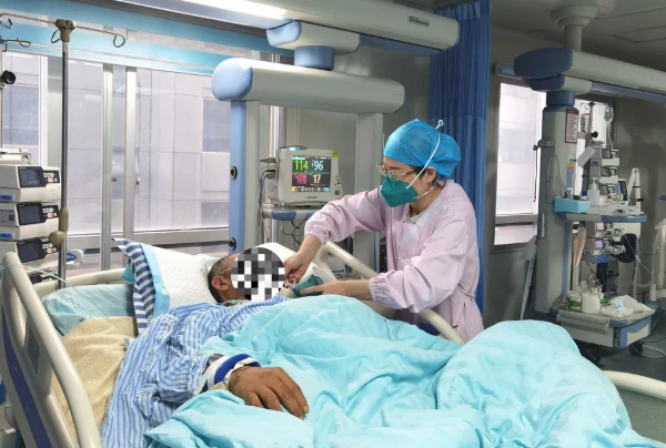 省中医院ICU二科负责人、主管护师金波在ICU已经工作了9年时间。“这里收治的患者都是危重症,很多患者一来就要插管、上呼吸机,平均年龄都是七八十岁,年纪最大的90多岁。我们对待病人都是全力救治,一刻也不会放松。患者病情平稳了就会转去普通病房,更进一步加快了病床流转,将资源留给更需要的人。