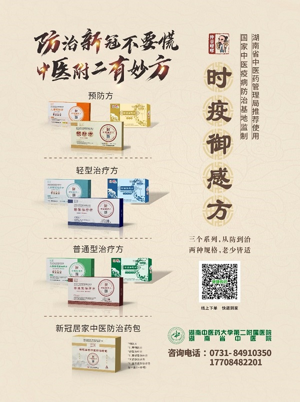为满足人民群众的防疫需求,保障老百姓的健康安全,近日,由国家中医疫病防治基地——湖南省中医院(湖南中医药大学第二附属医院)推出的系列“新冠居家中医防治药包——时疫御感方”正式上线,可用于预防和治疗新冠肺炎。