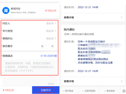 填写信息和病情,可上传图片等资料,立即支付。