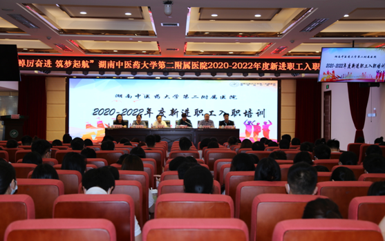 9月6日下午,2020-2022年度新进职工入职培训开班仪式在华佗楼25楼多功能会议厅隆重举行,在家院领导班子成员及相关职能科室负责人出席仪式,2020-2022年度新进职工300余人参加,仪式由医院党委委员、副院长游柏稳主持。仪式上,院领导带领全体新职工进行了庄严宣誓。一句句铿锵有力的誓言,提醒他们谨记自己作为一名医务人员和一名中医附二人所肩负的责任。杨铭、严伊宁、毛昀分别作为2020、2021和2022的新进职工代表上台发言,感谢医院提供了优质平台,并表达了他们在今后在工作中奋勇拼搏、刻苦钻研的决心,成为一名优秀中医附二人的信心。