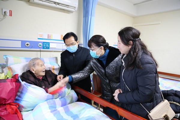 “我们代表医院党委和全体干部职工来给您拜个早年,祝您新春快乐,身体健康!”我院领导来到社会福利院看望老党员黄政闿,黄老是我院肛肠科建设初期的科室主任,见证了医院和科室发展的风风雨雨,虽已102岁高龄,但仍精神矍铄、思维清晰。她激动地说道:“医院在院党委的领导下变得越来越好,由衷地为你们感到高兴!”