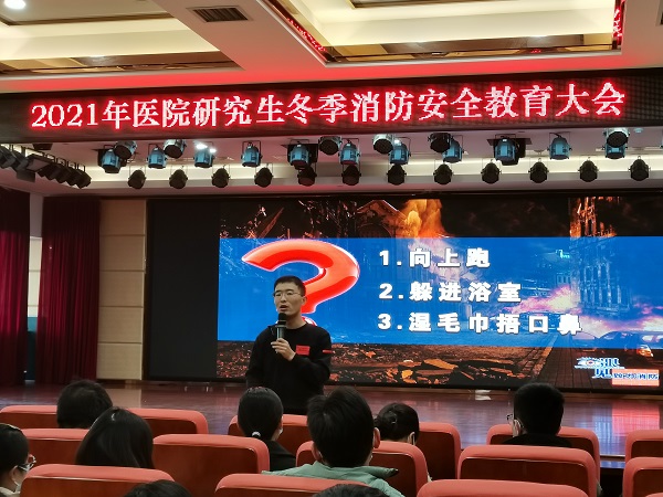 12月2日下午,我院积极响应学校号召,由教务部主办、安全保卫部协办,组织开展“2021年医院研究生冬季消防安全教育大会”,特别邀请湖南省致力消防宣传中心的李杰老师进行宣讲。