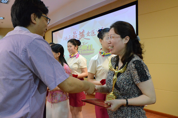 6月25日上午,首届“湖南最美女医师”颁奖典礼暨2016年湖南女医师协会学术年会在省妇幼保健院举行。活动中,湖南中医药大学第二附属医院妇科主任、教授匡继林等12名女医务工作者获评“湖南最美女医师”,以此来表彰她们在平凡的工作岗位上做出的突出贡献。第九届湖南省政协副主席、省计生协会会长石玉珍,中国女医师协会常务副会长王捍锋,湖南省妇女联合会主席、党组书记杜亚玲,湖南省卫生计生委党组书记詹鸣等领导为12名最美女医师颁奖。湖南中医药大学监察室主任伍一文及医院二十多名职工代表也现场见证了这一荣誉时刻。