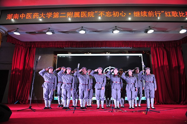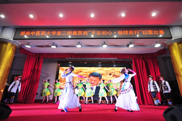 党委书记何永恒为比赛致辞,他指出,这次红歌比赛是我院党委学习宣传党的十九大精神的一次重要活动,希望借此活动,进一步带动全院干部员工投身于十九大精神学习的热心和决心,以昂扬的精神状态,饱满的工作学习热情,奋斗不息的责任担当,牢记使命,不忘初心,继续前行,为稳步把我院建成全国一流的中医药大学附属医院不懈奋斗!