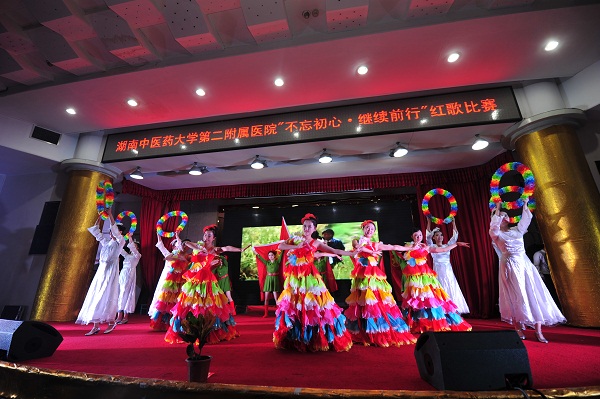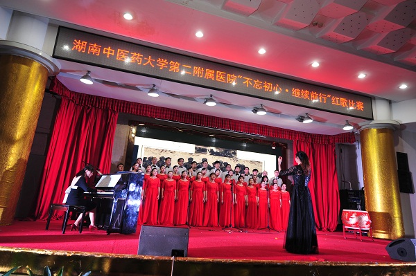 一首红歌,一段历史;一首红歌,一面旗帜。为庆祝党的十九大胜利闭幕、中国人民解放军建军90周年,经过一个多月的精心筹备,11月16日晚上,我院举办了“不忘初心•继续前行”红歌比赛。医院党委书记何永恒,院长李木清,党委副书记、纪委书记、工会主席孙绍裘,副院长朱莹、高积慧、蔡建军,院长助理、医务部长游柏稳任比赛评委,来自医院的8个党支部队伍、百余名选手参加本次比赛,400多名职工及其家属观看比赛。