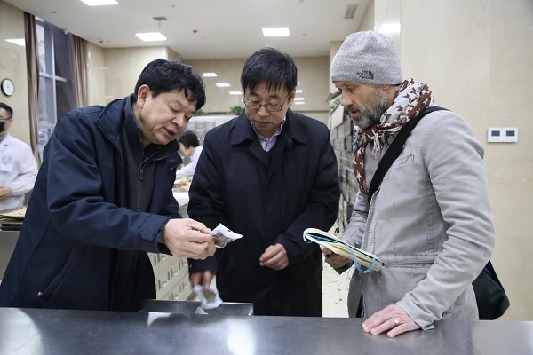 在纪委书记孙绍裘陪同的陪同下,两位记者先后参观了我院中药房、骨伤科及张仲景祠旧址。参观过程中,PETER FRANKLIN对我院自制中药、中医正骨及医圣张仲景历史表现出浓厚兴趣,并就相关问题对医院教授们进行了采访。