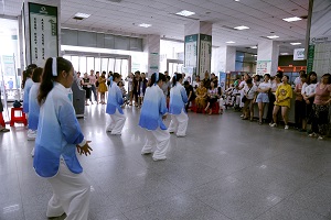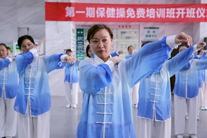 在开班仪式上,医院传统保健队身着传统运动特色服装为大家展示了八段锦、五禽戏、经络拍打操等中医保健运动项目。舒缓轻柔的旋律、气定神闲的表情、刚柔并济的动作赢得了现场学员及观众的阵阵掌声。此次八段锦免费培训班赢得了广大病友的热烈追捧,医院各科室都有病友前来踊跃报名,大家学习八段锦的热情异常高涨。