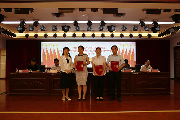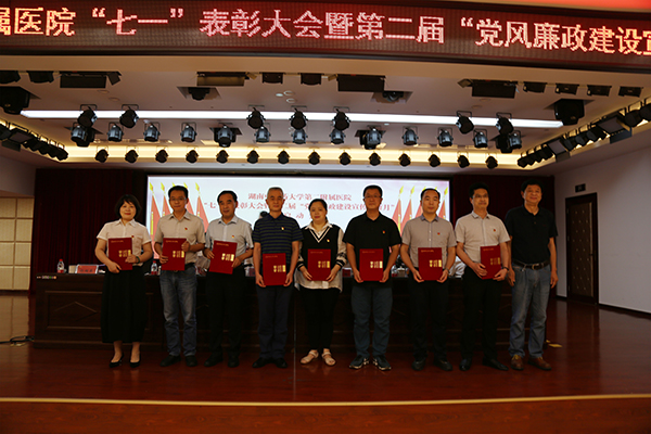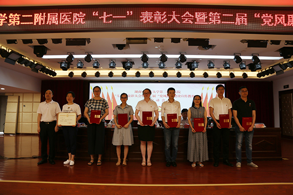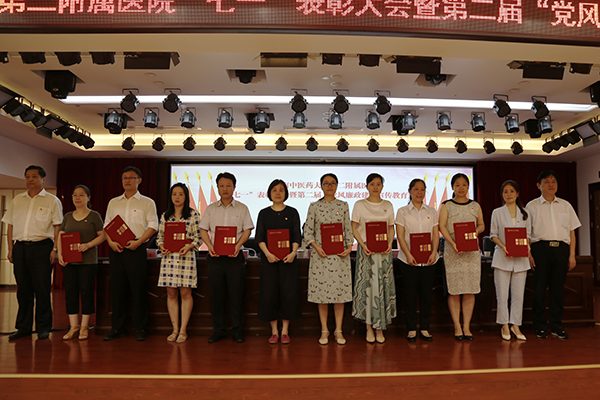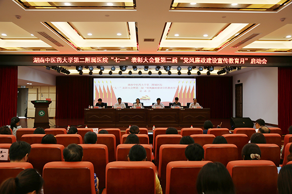 “七一”表彰大会在庄严的国歌声中拉开帷幕,大会由医院党委书记何永恒主持。院长李木清宣读了《湖南中医药大学第二附属医院关于表彰优秀党支部、优秀共产党员、优秀党务工作者的决定》,在喜气洋洋的音乐中,张玉芬书记和院领导为受表彰的3个优秀党支部、24名优秀党员和10名优秀党务工作者进行颁奖。作为受表彰的集体和个人代表,机关第一党支部书记贺霞、监察科干事王哲和肾病科副主任医师董扬洲分别发言,他们纷纷表示在今后的工作中,会珍惜荣誉,再接再厉,全力投入到工作中,为医院事业发展贡献自己的力量。
