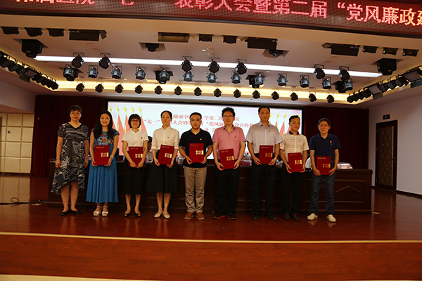 7月11日下午,我院“七一”表彰大会暨第二届“党风廉政建设宣传教育月”启动会在外科楼25楼多功能会议厅隆重召开。校(院)党委委员、纪委书记张玉芬出席会议,医院在家党委班子成员、全体受表彰对象、护士长以上中层干部、全体党员、民主党派代表共300余人参加了会议。