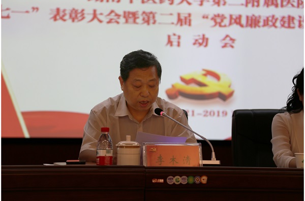 随后进行的医院第二届“党风廉政建设宣传教育月”启动会由李木清院长主持,医院党委副书记、纪委书记杨彤宣读了《医院第二届“党风廉政建设宣传教育月”实施方案》,并对今年党风廉政建设宣传教育月活动的开展进行了详细的部署安排。