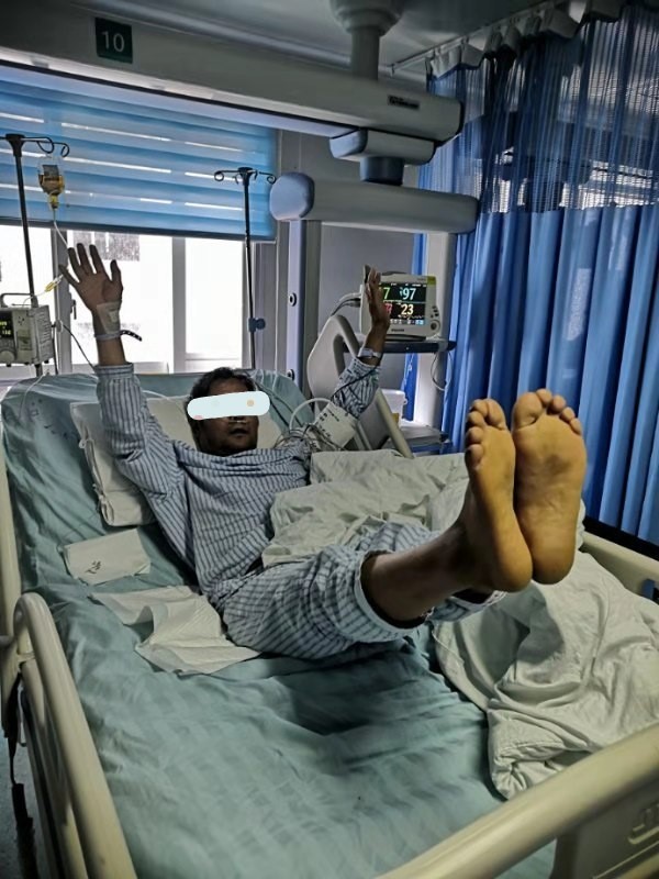 术后第二天查房,患者神志清楚,言语清晰,四肢均能活动,后转入普通病房继续治疗。
