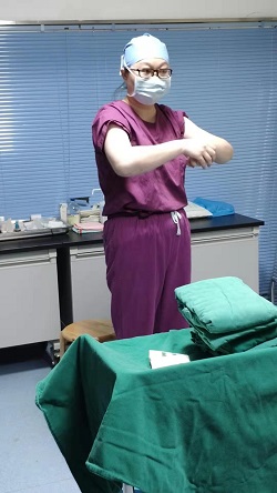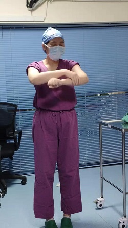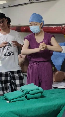 技能培训方面,刘思、马晓晴、谢宇雯三位老师讲解了临床基本技能操作并开展了洗手、穿脱手术衣等实践技能操作训练。
