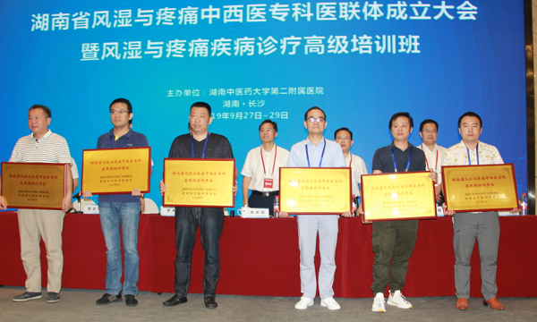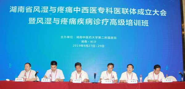 9月28日,湖南省风湿与疼痛中西医专科医联体成立大会在长沙召开,全省共230余家医疗单位加入医联体联盟。湖南省中医药管理局副局长肖文明、湖南中医药大学副校长葛金文、湖南中医药大学第二附属医院(湖南省中医院)院长李木清、湖南省中医药管理局医政医管处副处长蔡宏坤、湖南中医药大学第二附属医院副院长孙绍裘、游柏稳、世界中医药学会联合会风湿病专业委员会副会长、湖南省人大代表、正清集团董事长兼总裁吴飞驰博士等领导出席会议。来自全省各市、县医疗卫生机构的风湿、疼痛科负责人及医联体联盟单位代表近400人参加会议。会议由医院副院长孙绍裘主持。
