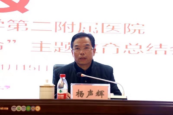 杨声辉书记全面总结了我院“不忘初心、牢记使命”主题教育的主要做法和工作成效。他表示,我院自去年9月份启动主题教育以来,严格按照党中央、省委和校(院)党委主题教育部署要求,紧密结合自身实际,提高政治站位,把学习教育、调查研究、检视问题、整改落实四项重点措施贯通起来一体推进:一是强化组织领导,迅速动员部署;二是抓实学习教育,夯实思想根基;三是深入调查研究,查找问题症结;四是对照检视问题,推动整改落实。针对主题教育存在的问题和不足,杨书记强调,要增强政治责任,把主题教育作为长期课题、终身课题,确保扎实有力持续推进:一是学习教育再加温,不断加强理论武装,推动学习贯彻习近平新时代中国特色社会主义思想走深走实、知行合一,提高运用理论指导实践、推动工作的能力;二是调查研究再加力,切实改进工作作风,持续深入开展调查研究工作,畅通职工反映问题的渠道,不断提高决策科学化水平;三是整改落实再加码,建立健全长效机制,把“改”字贯穿始终,让问题件件有整改、事事有落实,把不忘初心、牢记使命的要求融入医院建设的各个方面,切实把主题教育的成效体现在医院发展、党的建设工作实效上。