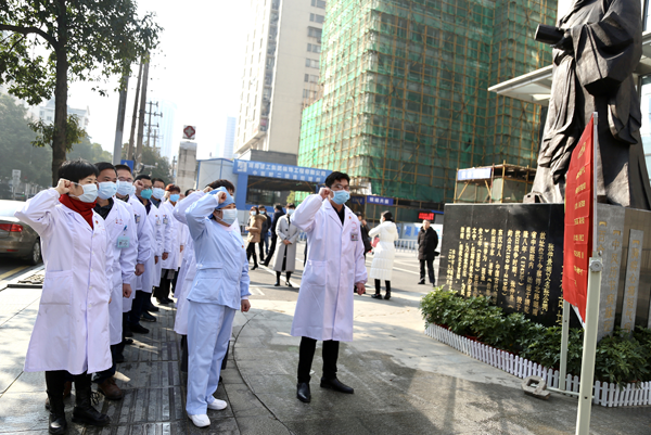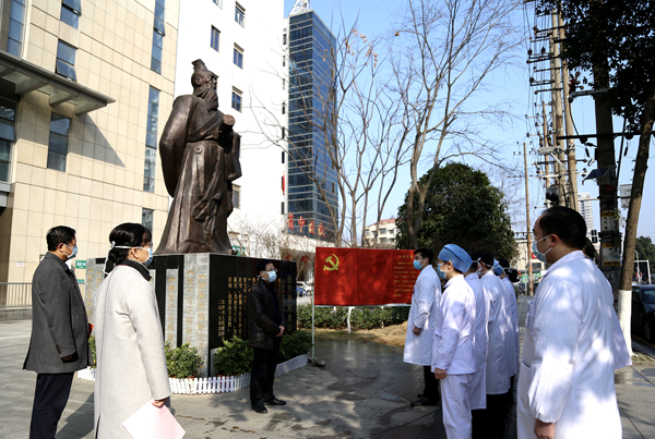 “一切听从召唤,坚定信心,不辱使命,用实际行动践行誓言,为维护人民群众健康,冲锋在前,无私奉献……”仲景铜像前的誓词字字铿锵、句句千钧!1月29日上午,湖南中医药大学第二附属医院举行新型肺炎疫情防控应急工作临时党支部宣誓仪式,医院党委副书记、纪委书记杨彤主持仪式。