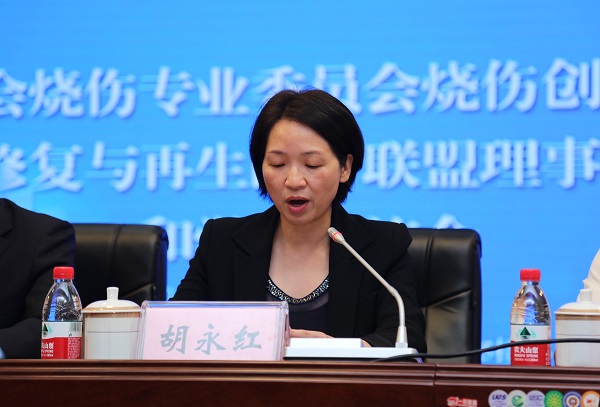 湖南省人民医院党委委员、工会主席、联盟分管领导胡永红宣读湖南创面修复与再生医疗联盟理事单位授牌批复文件。