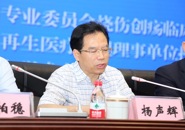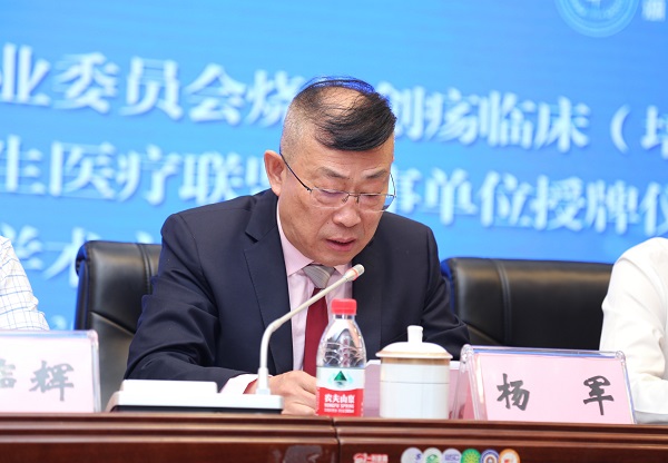 中国中西医结合学会烧伤专业委员会医疗部主任杨军宣读中国中西医结合学会烧伤专业委员会烧伤创疡临床(培训)基地授牌批复文件。