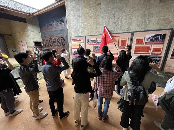 529日,药剂党支部全体党员来到享有“湘东明珠”美誉的大围山镇,追寻红色足迹,参观了楚东山大屋,学习湘鄂赣省革命根据地发展的厉史,重温了入党誓词,传承红色基因。