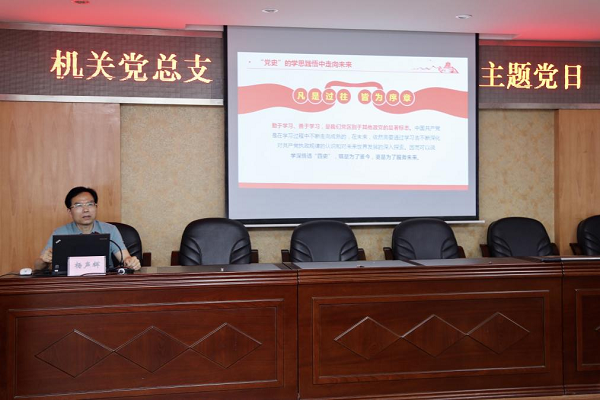 铭记百年党史,启航新的征程。在喜迎建党100周年之际,机关党总支于5月31日召开主题党日,党总支书记汤雪飞主持。医院党委书记杨声辉以“学党史、铭党恩、强党性”为主题给机关第一、第二党支部全体党员上了一堂生动深刻的党课。