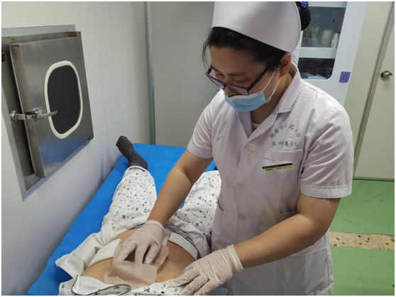 伤口造口组长龚湘萍护士长为患者发放礼品并指导如何使用
